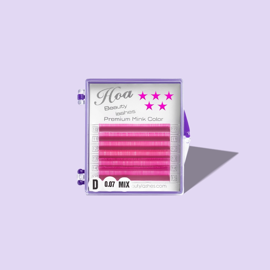 Mi màu 6 line - Dòng mi dễ bắt keo sản xuất bởi nhà máy sản xuất lông mi của Hoa Beauty Lashes. Với 24 màu sắc nổi bật: xanh, đỏ, tím, vàng, lam, nâu, cam,… là đơn vị duy nhất có đẩy đủ phong phú màu nhất thị trường mi nối hiện nay
